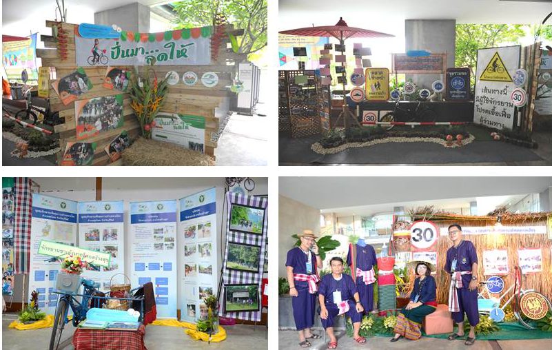 Ten cycling communities took their prop to the venue to set up booths to tell stories of their works. Had Sieo Sub-District Municipality in Sukhothai Province presented how cycling had been promoted consistently with traditional culture of Thai Puan people there. Pasak Sub-District Municipality in Lamphun Province used cycling promotion for environment management by recycling discarded materials to make signs for road safety. Nong Larn Sub-District Municipality in Kanchanaburi Province’s work to promote cycling in Nong Mai Kaen community were presented by a whole team of municipality administration and Buddhist monks from local temple. They employed a simple but powerful strategy of tripartite cooperation between community, temple and school to promote cycling. Their outstanding outputs were asking Buddhist temple congregations to give alms in form of bicycle, a ‘bicycle clinic’ and a ‘bicycle bank’. Bung Kei Sub-District Hospital in Nakhon Nayok Province which promoted cycling in Bung Kei community presented their methods to ‘cycle for changes’. Ta Khan cycling community in Rayong Province worked with shops in the community to adopt an incentive of which customers who cycle to buy merchandises would enjoy concessions, resulting in nearly all community members subscribing to this scheme. Chaiyaphum Town Municipality in Chaiyaphum Province applied a tradition of this one-thousand-year-old town to mobilise young people to become “one-thousand-year cyclists”, being volunteers to develop their community, building intimacy between the people and the municipality. Baan Fang Sub-District Municipality in Khon Kaen Province worked wonder with small communities, which in the beginning only wanted to be given free bicycles, to have young people as cycling guides, effectively build leadership among children. Communities in Hye Sok Sub-District, Phutthaisong District, Buriram Province, enabled old people in the communities who had difficulties to walk to enjoy going around again by tricycle. Na thom cycling community in Phatthalung Province used cycling as a tool to create activities that family members could do together, turning them away from risky behaviours, and thus build good family relations. Finally, a cycling community in Charoenphon sub-District in Nakhon Sawan Province had a strong leader whose symbol was a ‘Big Bicycle’ to act as a model for community members to follow.